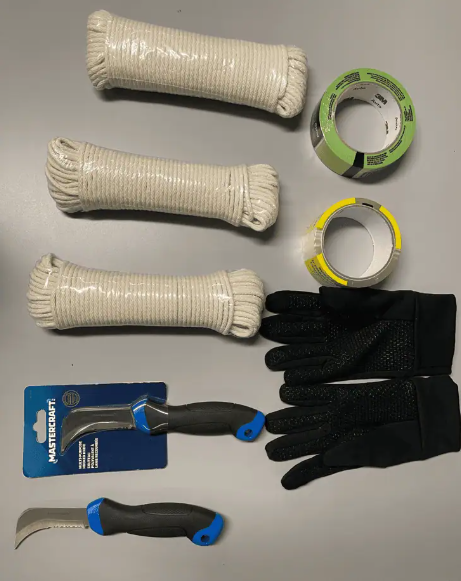 调查人员表示,嫌疑人被捕时还携带一个背包,内有绳索、胶带卷、手套和两把刀。