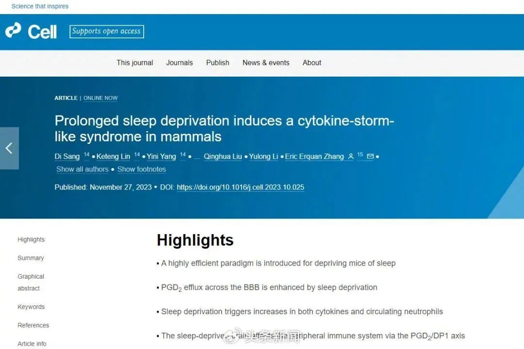 研究指出,睡眠不足恐会诱发人体内的炎症风暴,引起器官损伤甚至死亡。
