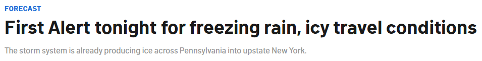 据报道,这一风暴系统已在宾夕法尼亚州境内形成冻雨,并逐步向纽约上州蔓延。周日日落时分,冻雨带移入新英格兰西部地区,即便仅形成一层薄冰,也会给出行带来极大隐患。