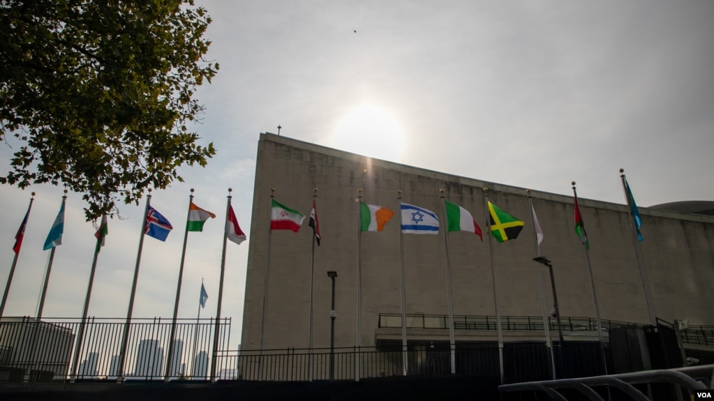资料照片:飘扬在纽约联合国总部外的旗帜。(2025年9月24日)