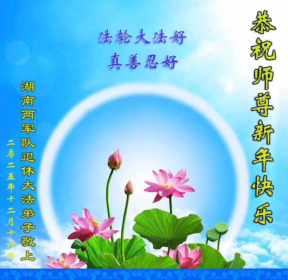 湖南省两军队退休大法弟子恭祝师尊新年快乐!