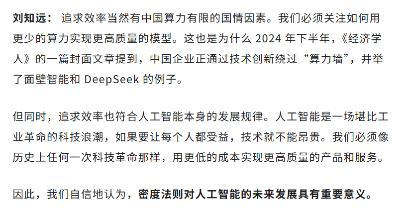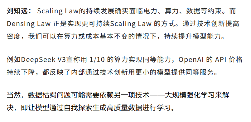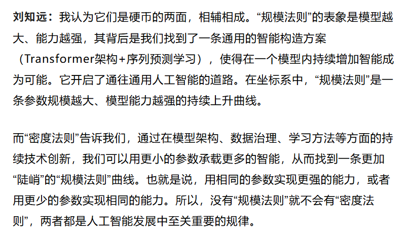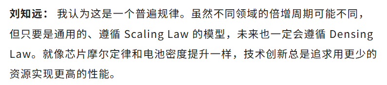 腾讯科技:刚才提到投入,大模型有暴力美学的 Scaling Law,您觉得 Densing Law 和 Scaling Law 是统一的还是矛盾的?