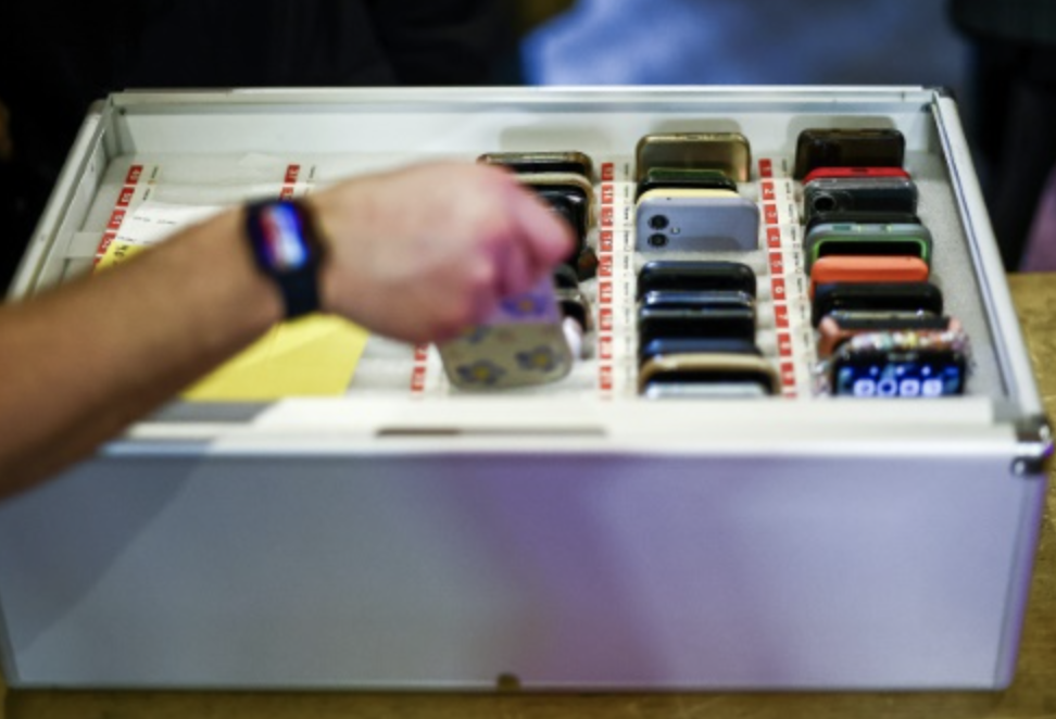 一部。两部。一共三十多部。它们被放进一个透明的小瘪子里,像被统一“寄存”的电子宠物,屏幕朝内,全部静音。