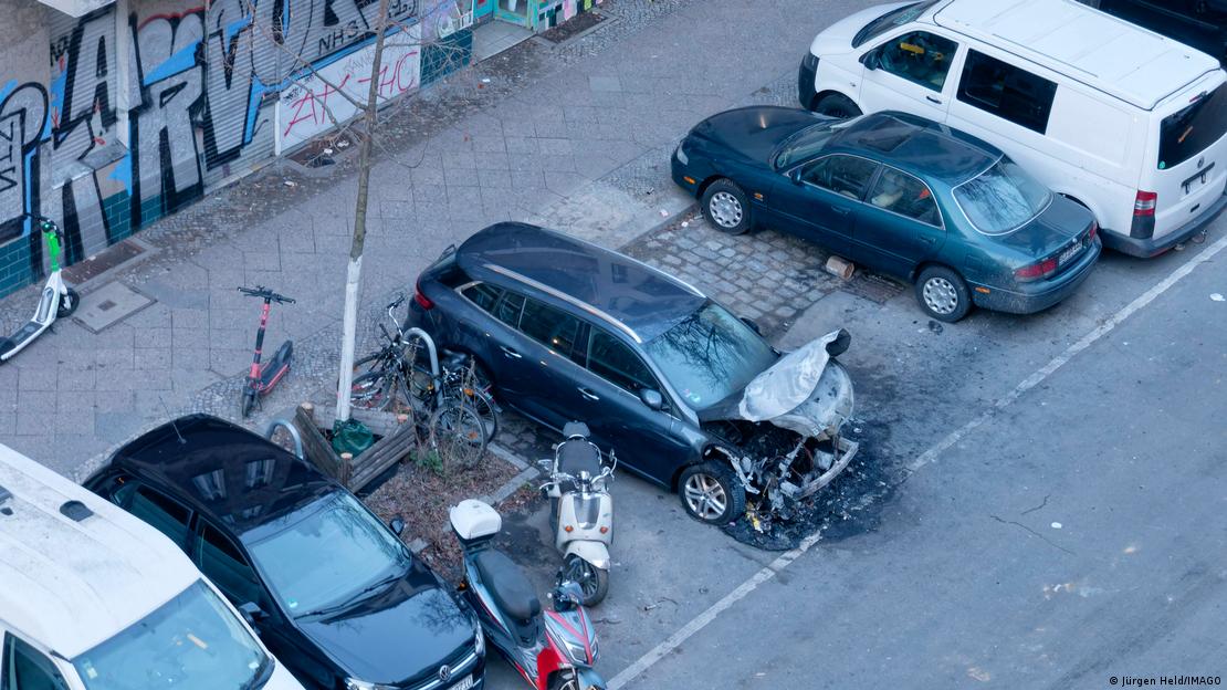 除夕夜柏林街头的汽车遭到打砸。图像来源: Jürgen Held/IMAGO