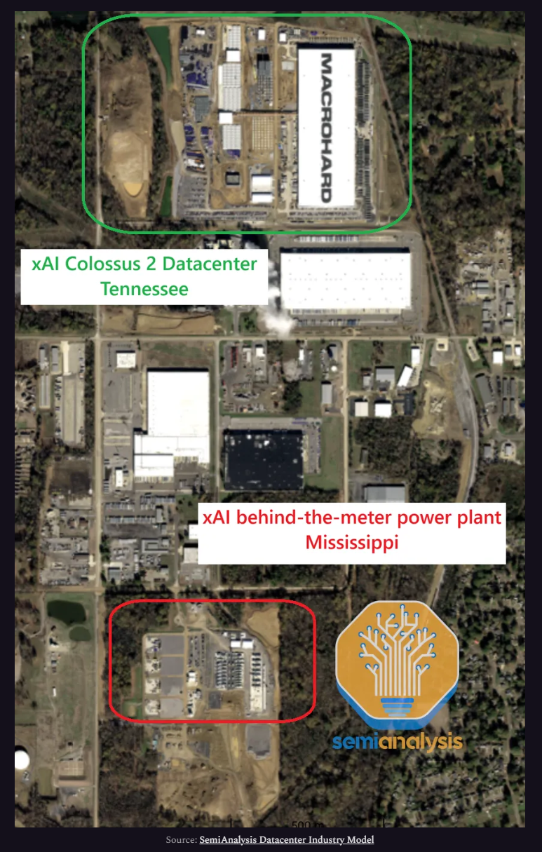 在孟菲斯,xAI在不到四个月内建成了一个10万卡规模的GPU集群。与其说这是算力奇迹,不如说是一场电力工程的极限操作: