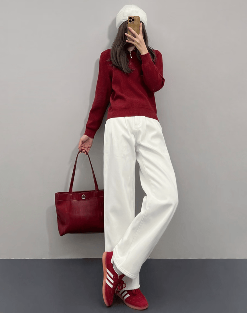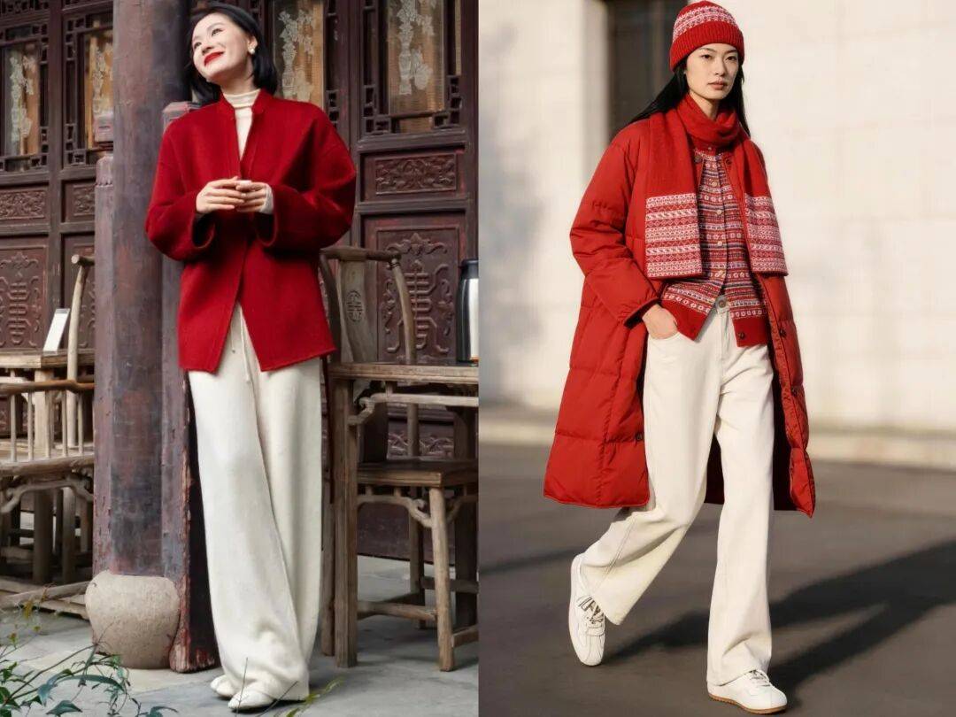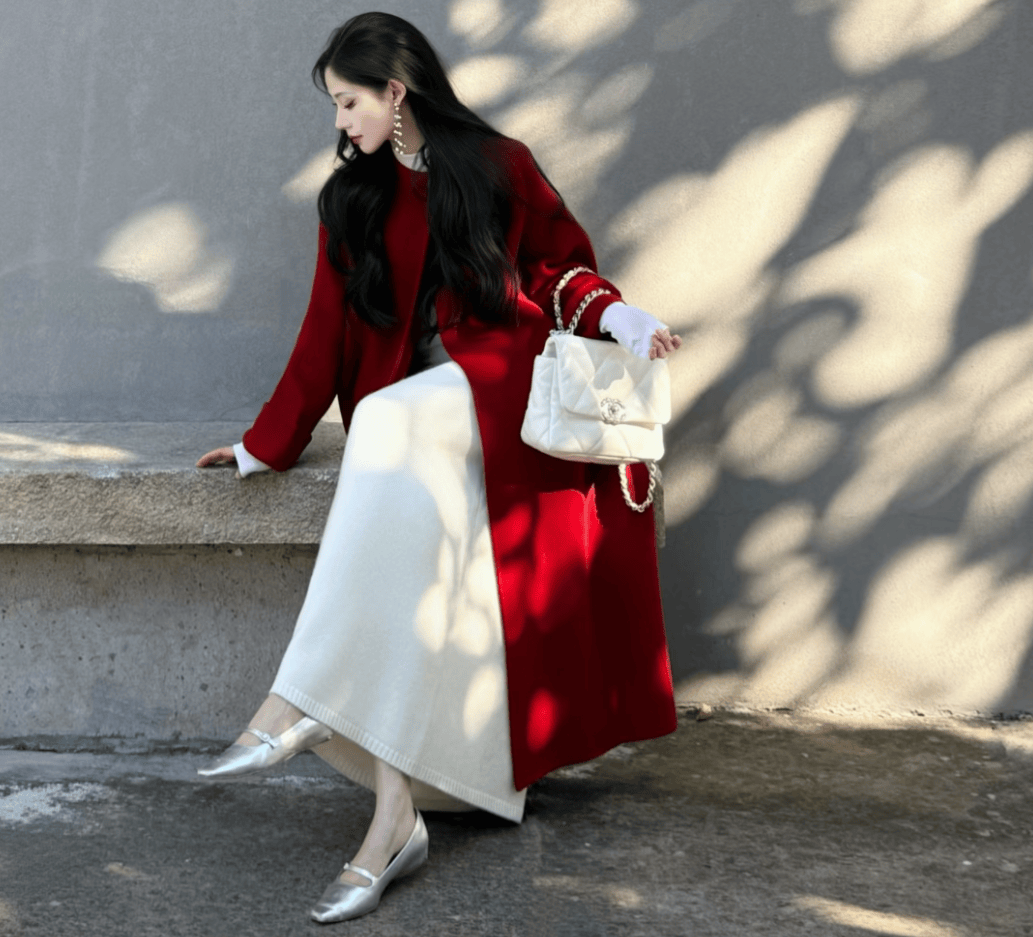 今年冬天这组配色,真的特别流行,不管是大衣还是毛衣,用红白搭配都能穿出高级感。