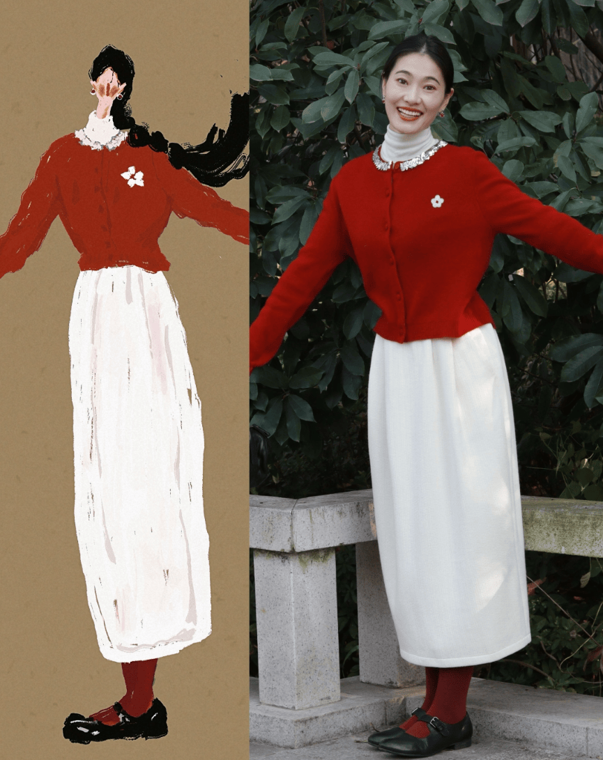 不知道大家,有没有喜欢上这个配色呢?其实红白搭配真的很适合我们,显瘦减龄还百搭