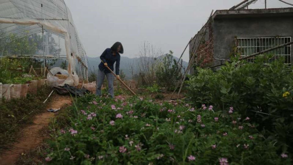 2018年,缪睫在小屋后院锄地 图/受访者提供