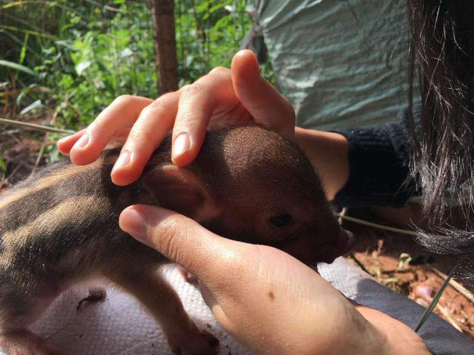 有一阵子,缪睫曾与当地农户合作养猪(半野生) 图/受访者提供