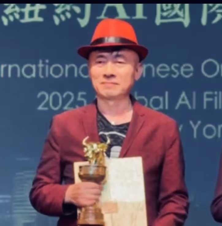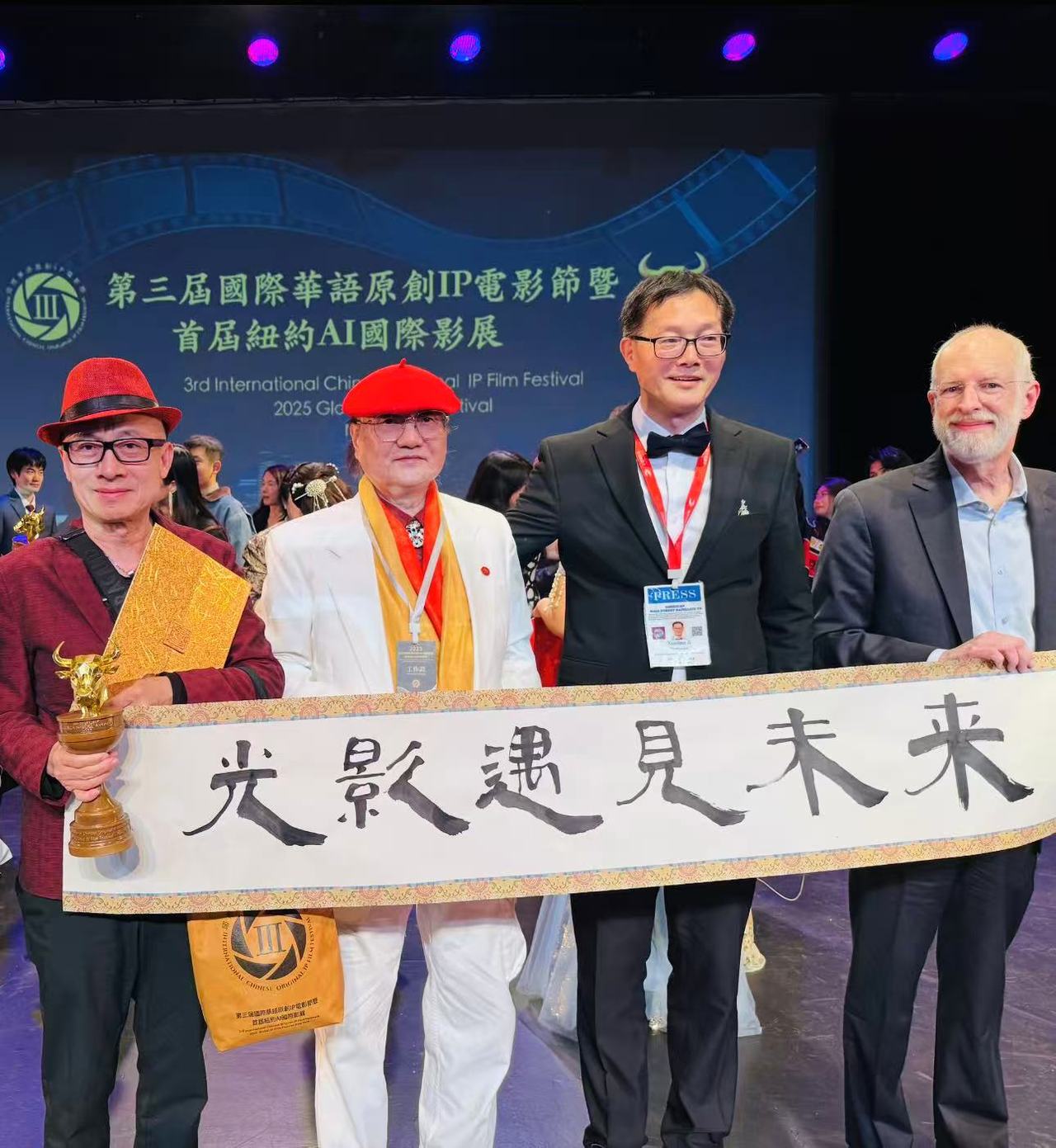 南加华语作家和电影人彭南林在第三届国际华语原创电影节暨国际AI首届影展中荣获“最佳主题创意奖”。(彭南林提供)