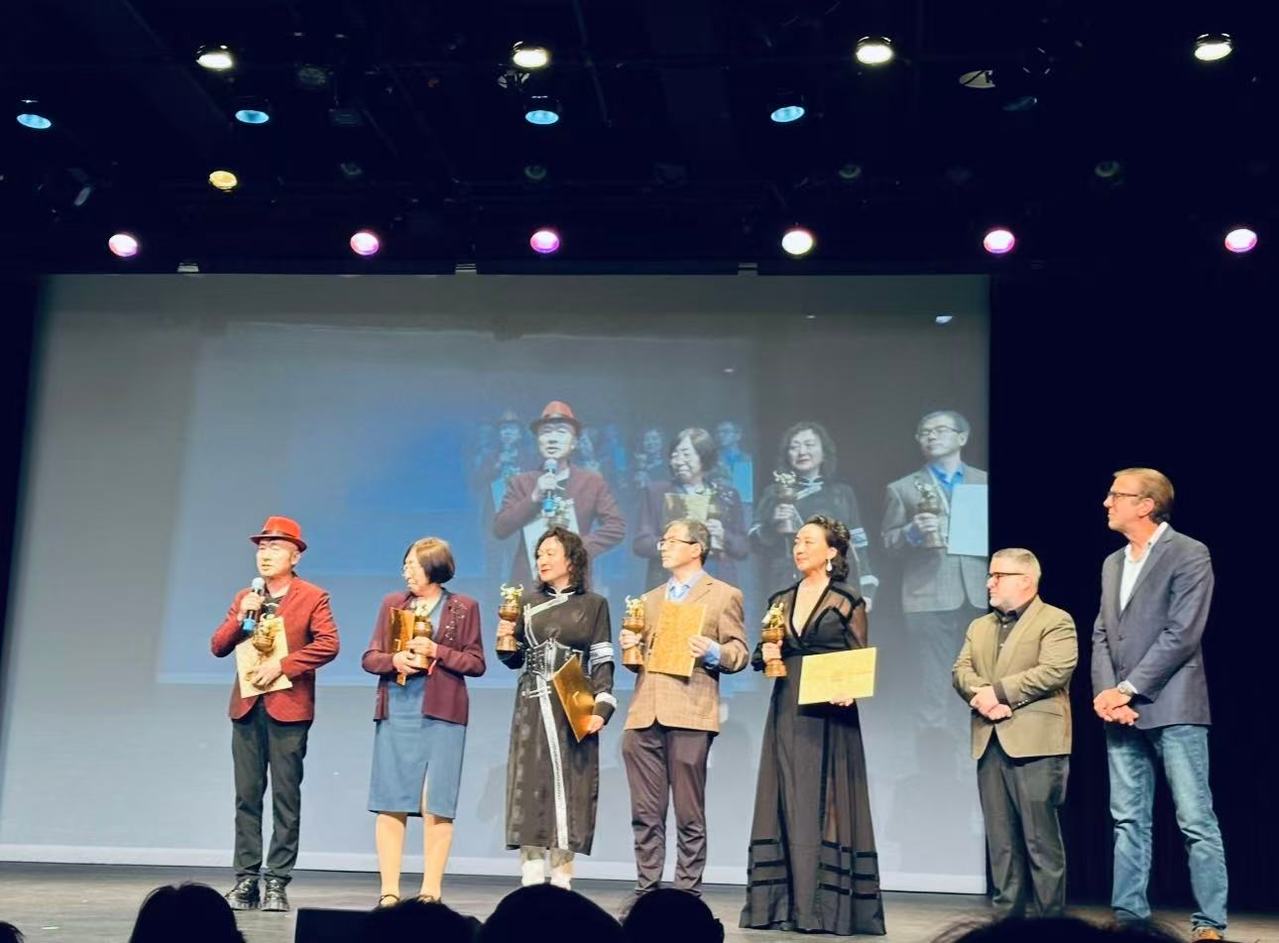 南加华语作家和电影人彭南林(左一)荣获“最佳主题创意奖”。(彭南林提供)