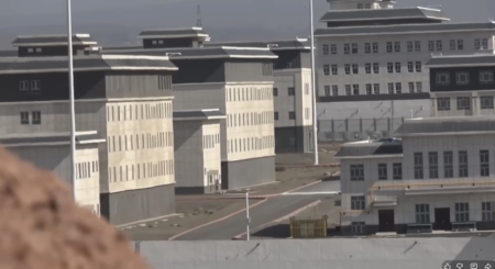 在库尔勒,他循着标记找到一处军营。营区深处、紧邻军事设施的位置,出现另一座高墙、铁丝网与守卫塔包围的大规模设施,无任何公开标识,且必须穿越军营才能抵达。