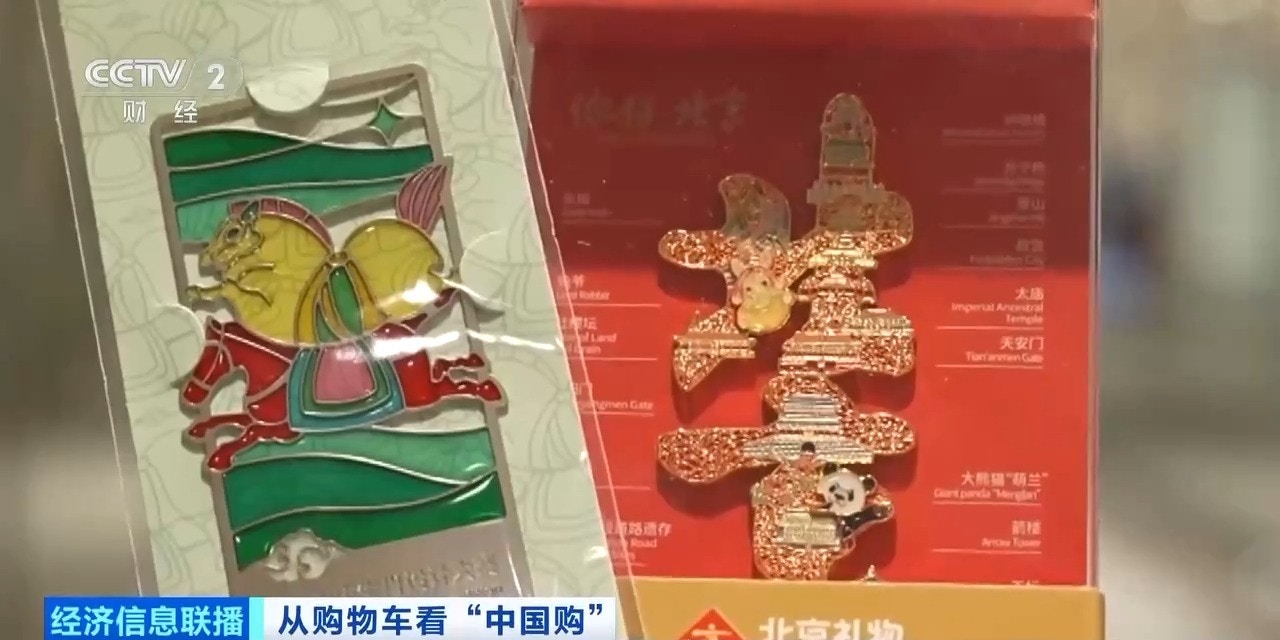 熊猫主题文创产品成为外国游客青睐的成都“新特产”。(央视截图)