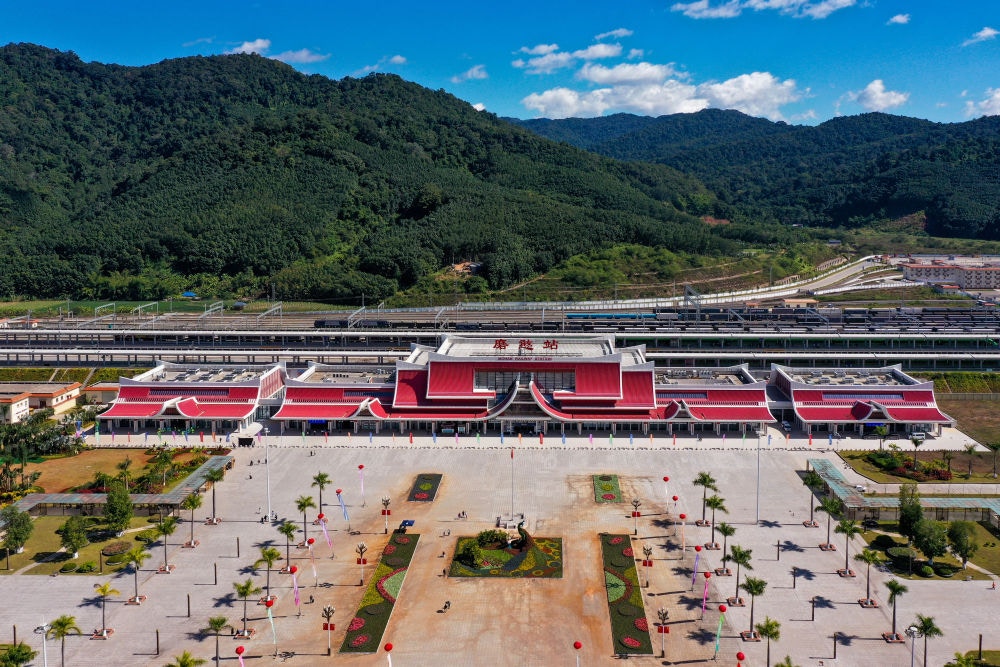 中老铁路磨憨站。(新华社)