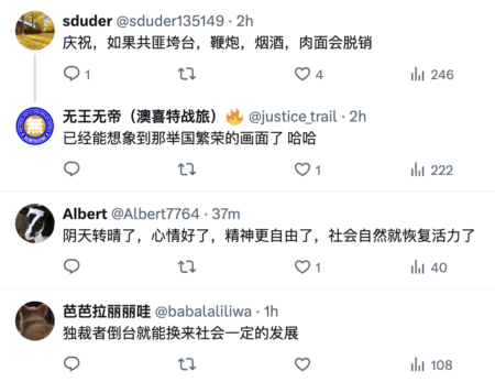在海外X平台上有不少网友调侃说,委内瑞拉给经济崩溃的中共国指明了方向。“独裁垮塌后,人民突然开始消费了,也有钱了,才一天经济就变好啦!”