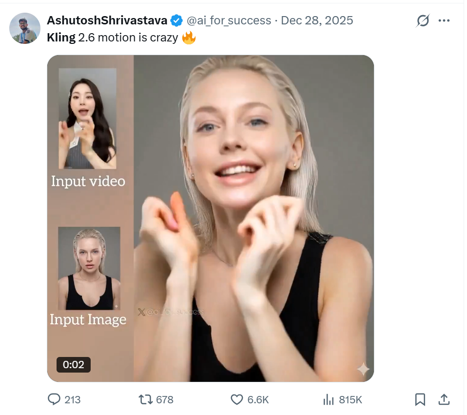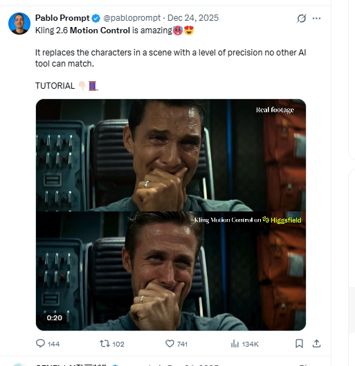 可灵近期在海外市场的表现验证了其产品的传播属性与商业价值。据光大证券发布的快评,新年期间,“Motion Control”玩法成为社交媒体上的热门趋势。大量来自韩国、俄罗斯等国的用户分享了使用可灵制作的跳舞视频,这种病毒式的传播直接带动了流水的激增。