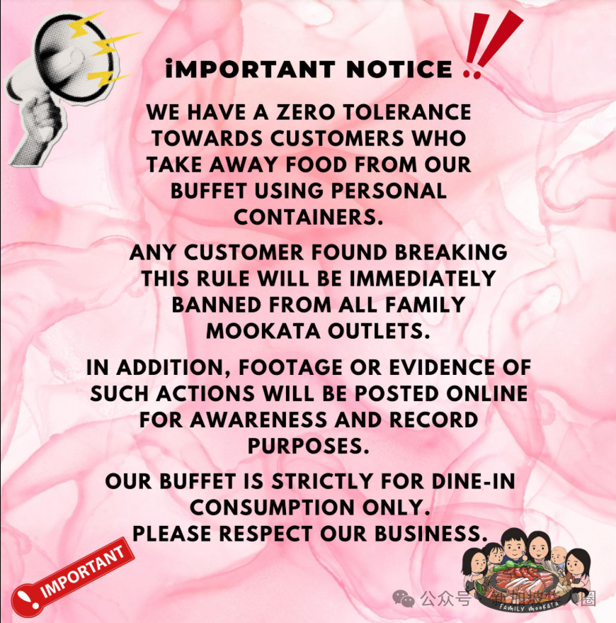 新加坡裕廊一带新开不久的泰式烤肉店Family Mookata,近日因多起自助餐被顾客私自打包带走的事件,在社交媒体公开发文严厉警告,引发网民热议。