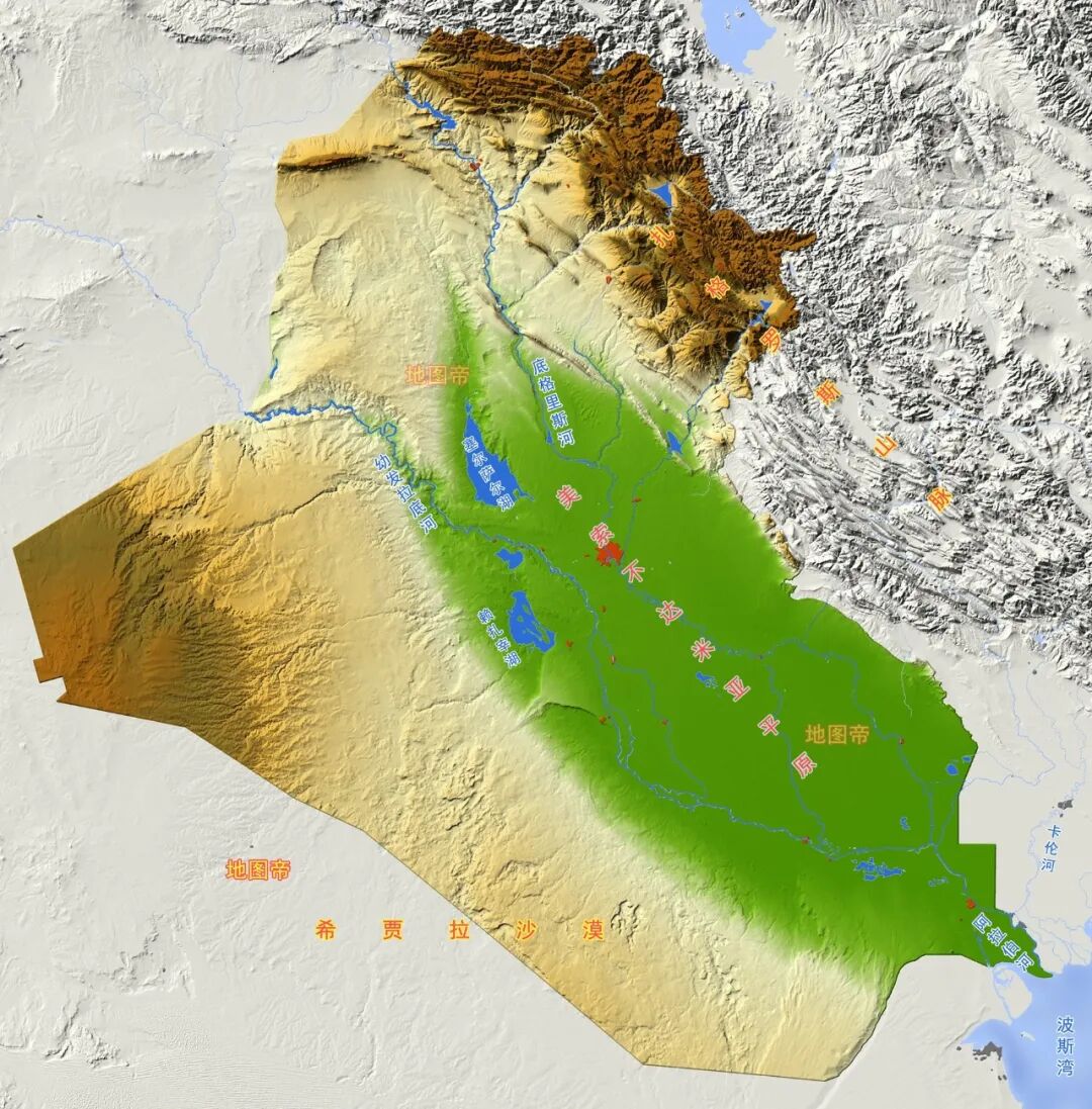 伊拉克位于阿拉伯半岛东北部,幼发拉底河和底格里斯河自西北向东南流贯全境,面积约43.83万平方千米,放在我国省级行政区中居第八位。