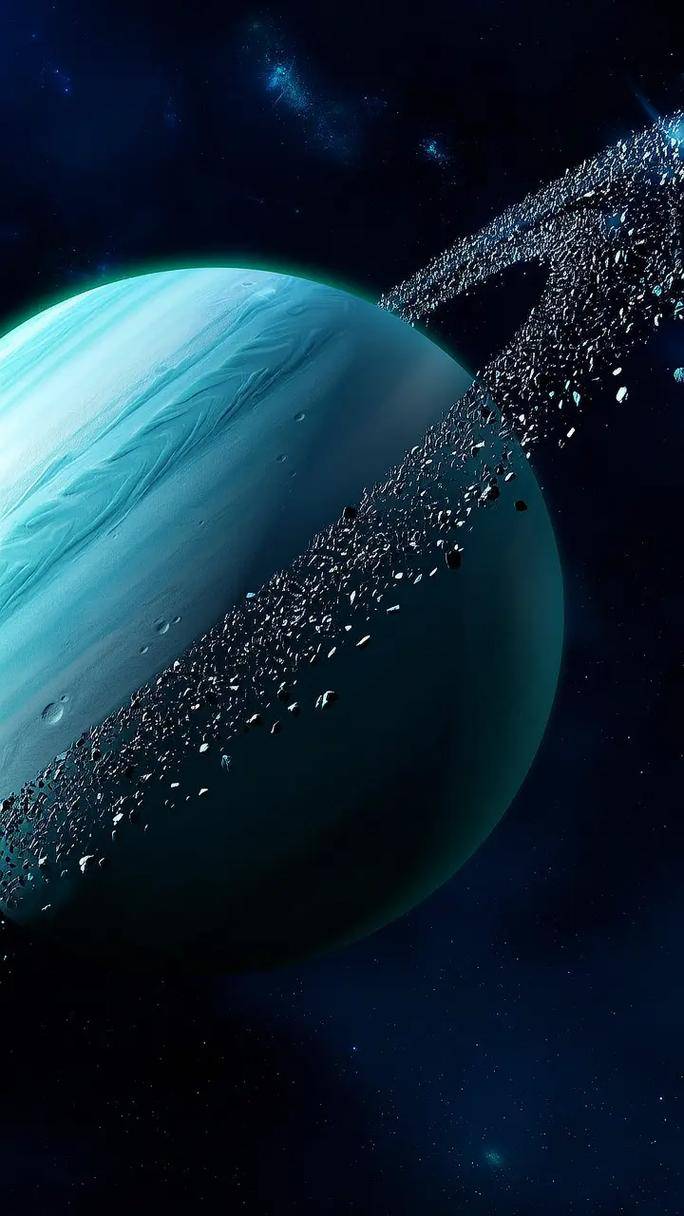 当你下一次抬头望向星空,看到那片虚无的黑暗时,请记住在我们肉眼看不见的地方,有一颗躺着的蓝色星球,正拖着13条漆黑如炭的行星环,像戴着镣铐的舞者,孤独地旋转。
