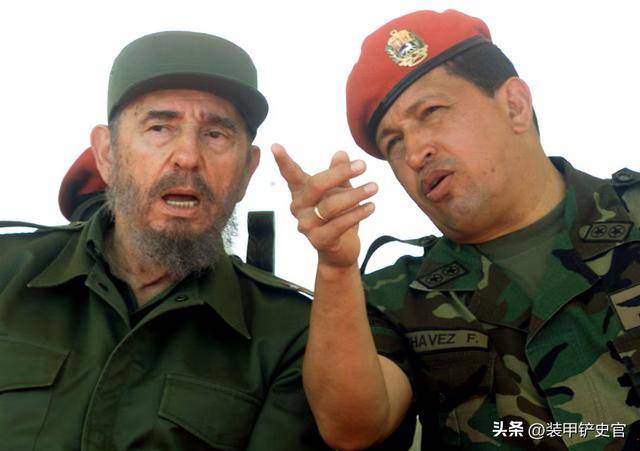 委内瑞拉已故前总统查韦斯与古巴领导人卡斯特罗在一起,两国建立了密切军事合作。