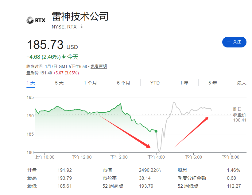 据报道,川普特别点名了RTX Corp.(原雷神技术公司),威胁称除非该公司增加生产能力投资,否则将停止与其开展业务。RTX股价在常规交易时段下跌2.5%,并在盘后交易中一度进一步下跌6%。