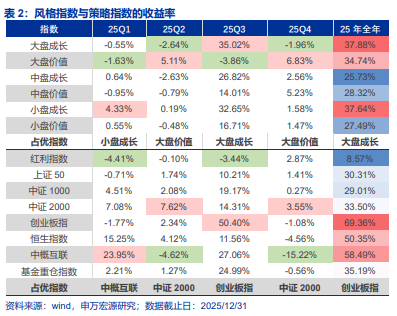风格方面,大盘成长指数全年上涨37.88%,创业板指涨幅达69.36%,成为表现最优的宽基指数。