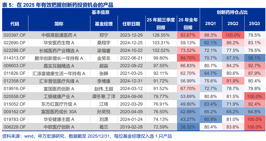 创新药在前三季度完成了典型的"估值修复加交易拥挤"过程,中证港股通创新药指数涨118.52%。郑宁、桑翔宇、梁福睿、金笑非等基金经理抓住了这波行情,其中中银港股通医药前三季度收益达126.55%。但真正拉开差距的不是买没买,而是"什么时候减"。三季度选择适度减仓创新药的郑宁和金笑非在全年维度表现更优,而单纯"死多头"全年排名反而回落。