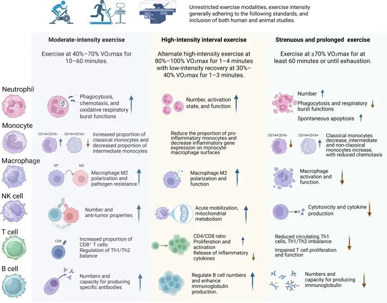 因此,高强度运动与免疫的关系并不是简单的加强或削弱,需要结合更多因素综合考量。