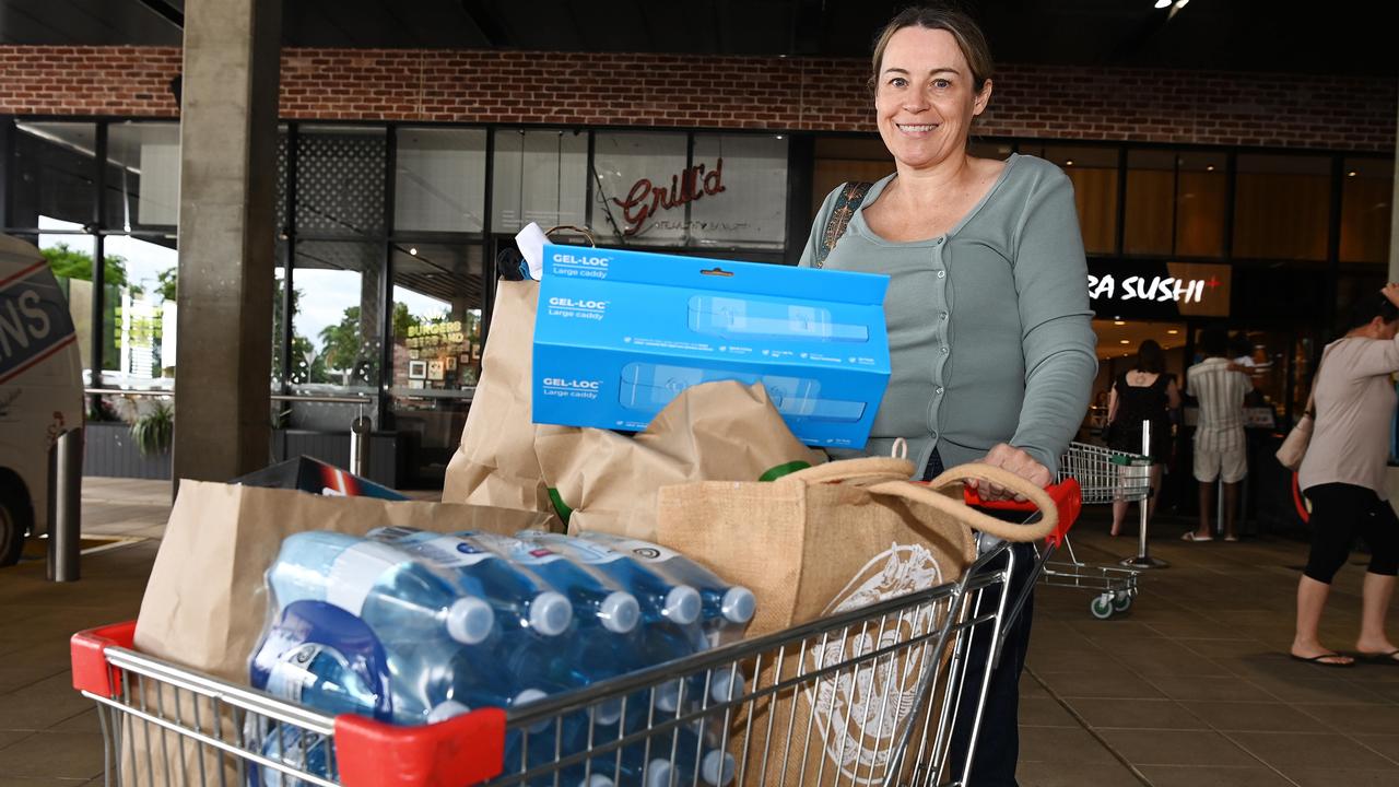 来自Charters Towers的Rochelle Moran在Townsville准备迎接直接冲击时进行防范。图片:Shae Beplate。