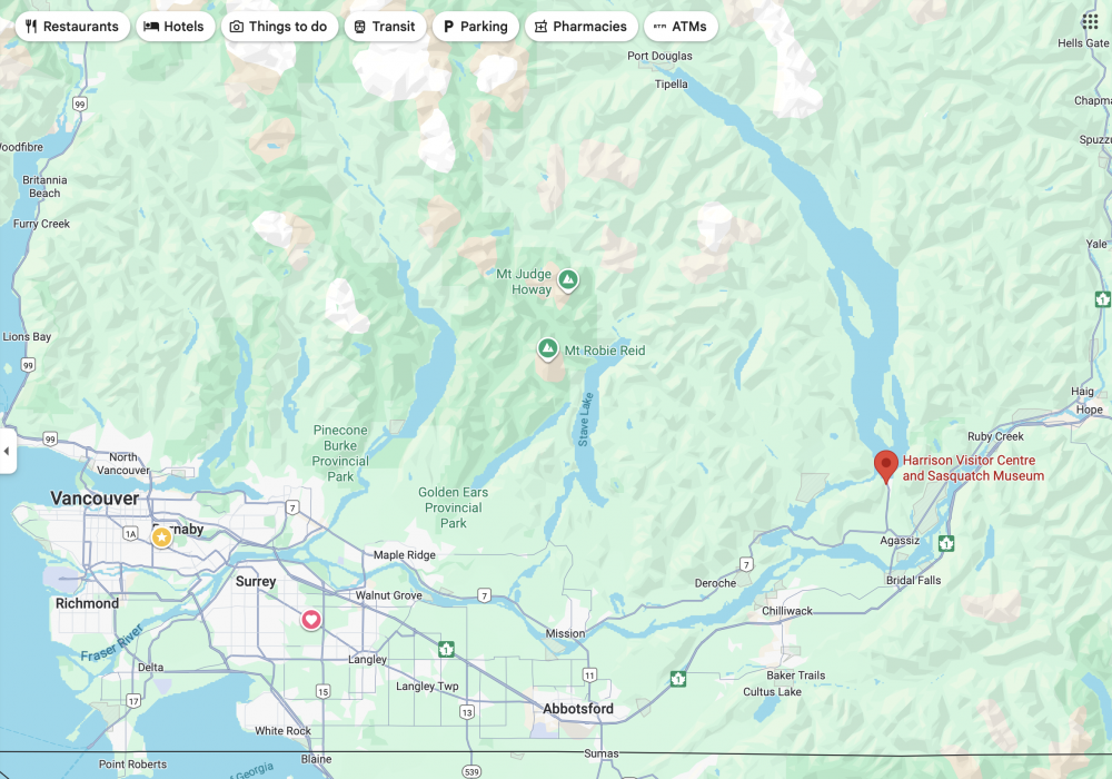 上图显示哈里逊温泉小镇的具体位置。可以从素里市开车或坐网约车去,大约需要一个多小时。网约车费用约100多加元。也可以乘坐公交车去。像我邻居老太太肯定要坐公交,因为本省65岁以上人士享受全省免费坐公交车待遇,所以他们不坐白不坐。