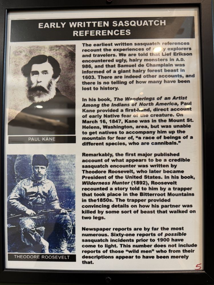博物馆馆员还告诉我一个当地发生的真实故事:一个原住民少女被野人大脚怪绑走,一年后释放回家,此时她已怀孕,诞下一浑身是毛的婴儿,婴儿随后早夭。
