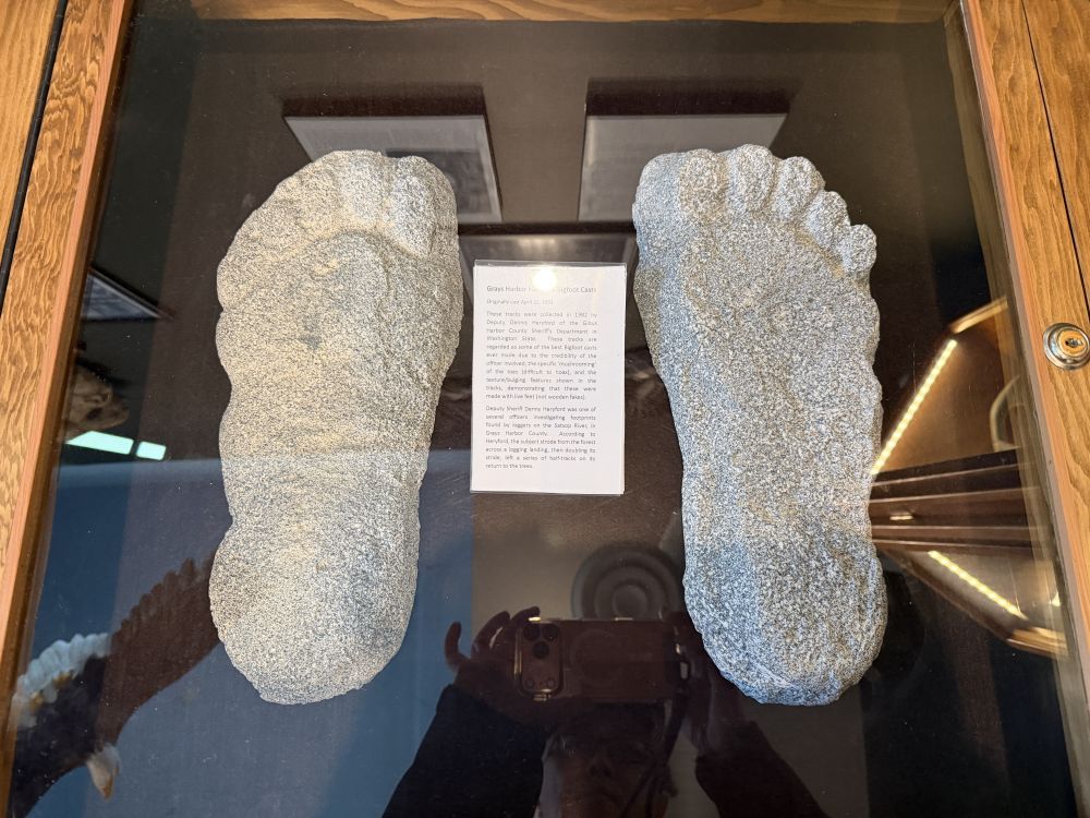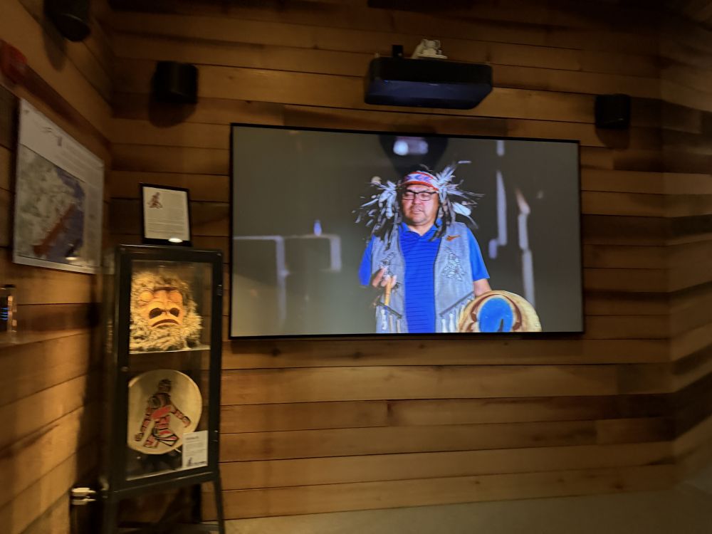 员工很热情,先领我到了多媒体播放室,看一部录像,讲的是当地野人大脚怪与原住民文化紧密相连——原住民不视大脚怪为怪物,而视他们为庇护神,每年夏季还有祭拜大脚怪的节日。