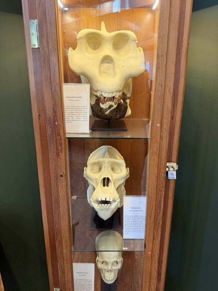 她相信北美的大脚怪最初源自中国,他们一路迁徙,跨越了西伯利亚,经过白令海峡,终于抵达北美,扎根于美国阿拉斯加、加拿大BC省、美国本土西北沿太平洋各州——华盛顿州、俄勒冈州、北加州。她指了指展柜里的头颅复制品,那最上方最大的头颅便是来自中国的灵长类头颅。