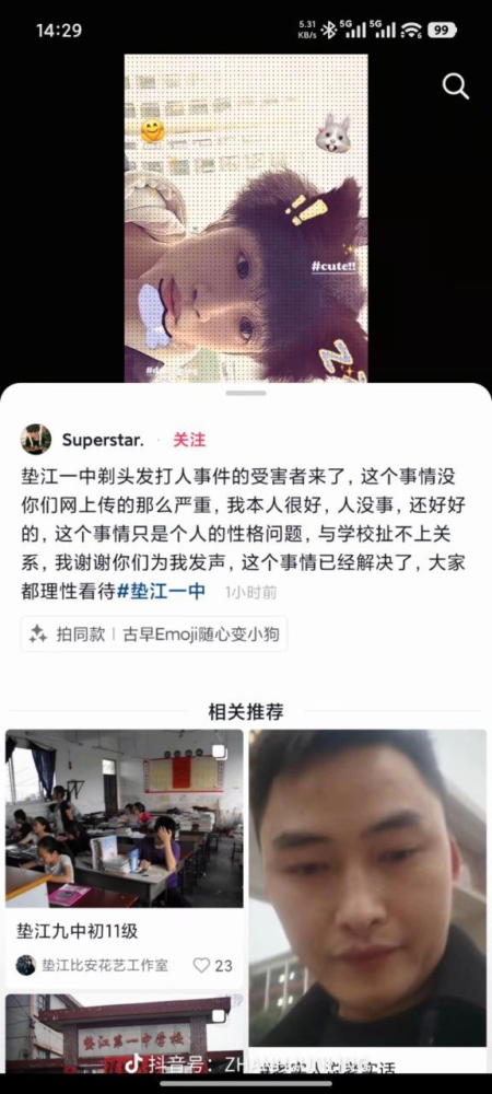 重庆某中学老师强制剪发 学生反抗被打伤