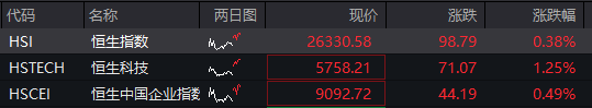 港股:截至发稿,恒指涨0.38%,恒科指涨1.25%。
