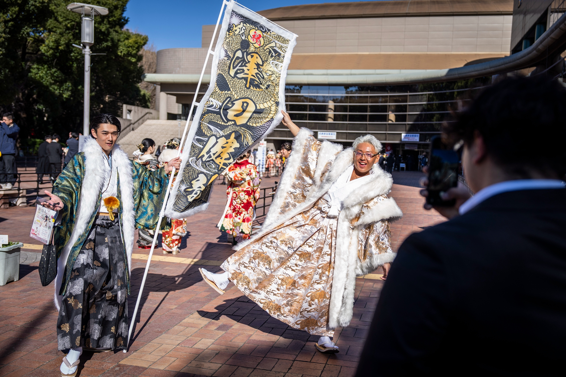 2026年1月12日,神奈川县川崎市,青年演员木下暖日(Danhi Kinoshita)在Todoroki体育馆参加成人典礼前,摆姿势拍照。(Yuichi Yamazaki/AFP via Getty Images)2026年1月12日,神奈川县川崎市,大学生Kosei Yamanaka在Todoroki体育馆参加成人典礼前,摆姿势拍照。(Yuichi Yamazaki/AFP via Getty Images)2026年1月12日,神奈川县川崎市,技校学生Ninto Wakimura在Todoroki体育馆参加成人典礼前,摆姿势拍照。(Yuichi Yamazaki/AFP via Getty Images)2026年1月12日,神奈川县川崎市,大学生Reo Hirayama在Todoroki体育馆参加成人典礼前,摆姿势拍照。(Yuichi Yamazaki/AFP via Getty Images)2026年1月12日,神奈川县川崎市,两名身着传统袴式和服(Hakama)的男子在Todoroki体育馆参加成人典礼前,摆姿势拍照。(Yuichi Yamazaki/AFP via Getty Images)2026年1月12日,神奈川县川崎市,三名年轻的建筑工人在Todoroki体育馆参加成人典礼前,摆姿势拍照。(Yuichi Yamazaki/AFP via Getty Images)