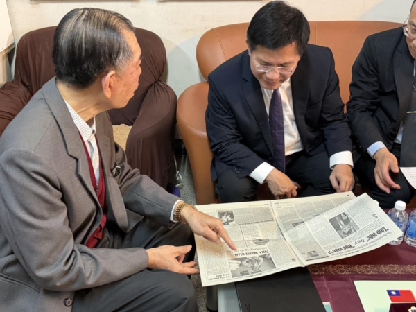 林佳龙表示,谈到过往,谢爸爸拿出一份珍藏多年的越南报纸。报道中,谢公使以“台湾外交官”身份受访,却因此遭到中共打压,甚至连未售出的报纸都被要求回收。谢爸爸看着那份报纸,脸上有满满的骄傲,却也藏着深深的不舍。他说,当年曾担心儿子受访太“高调”,恐怕引来更高强度的打压,甚至危及人身安全。但不论在越南或印度,谢公使从不畏惧。他一次又一次接受媒体访问,勇敢说出台湾的主张,维护国家的尊严与立场,令人十分钦佩。
