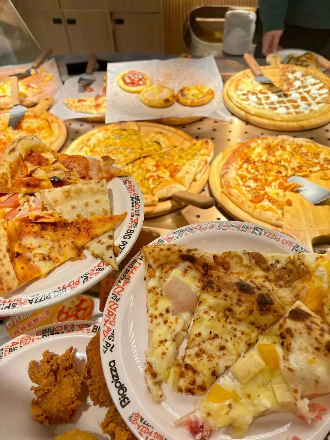 比格会提供大概15种不同风味的披萨供顾客拿取,绝对能够满足大学生们的披萨瘾 / 图源@黄河河(已获得授权)