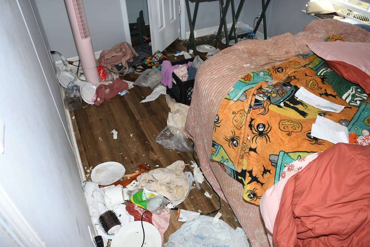 调查人员描述,屋内环境极其恶劣:地面遍布尿液、粪便、蟑螂和垃圾,浴白里积着深褐色污水,垃圾和脏衣服散落各处,连女孩的床铺也未能幸免。