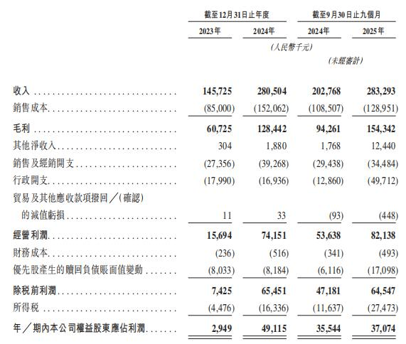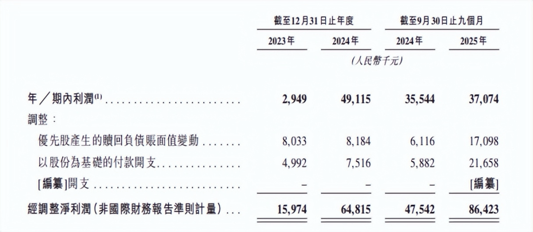 2024 年 2.81亿元,2025 年前三季度达到 2.83亿元。利润也不低,经调整净利润分别为 1597.4 万元、6481.5 万元以及 8642.3 万元。