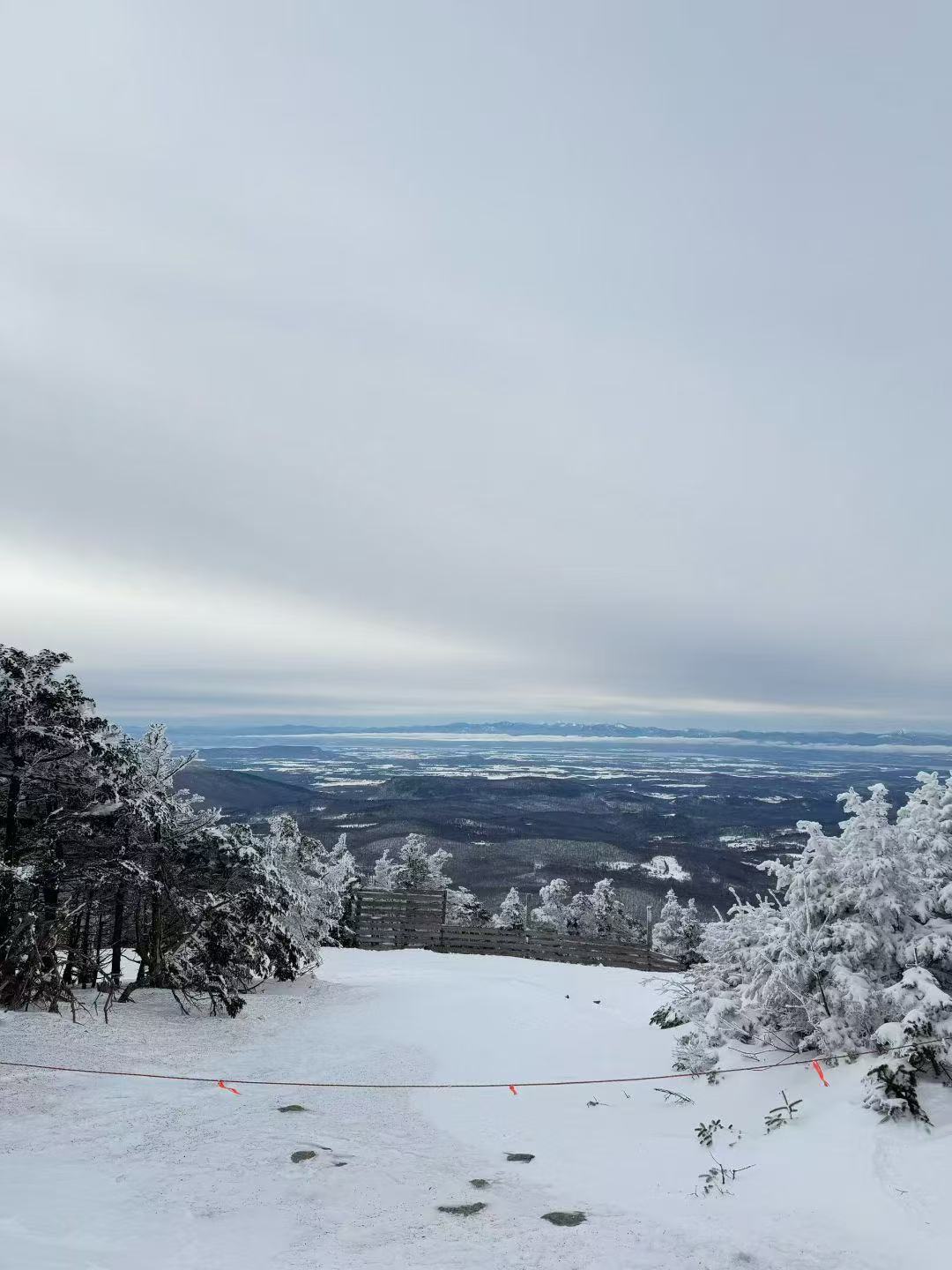 天气晴朗时,部分高点雪道视野极佳,可远眺连绵山峦,白雪覆蓋的森林与起伏地形构成典型的新英格兰冬季景色,让人不自觉放慢脚步,享受当下。