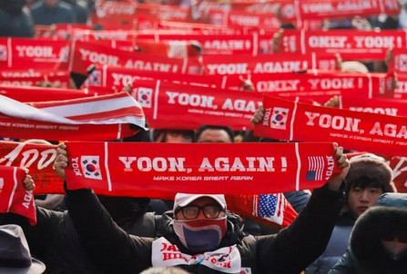 路透社照片显示在法庭外,许多支持者举着红色横幅写到:“YOON,AGAIN!”。