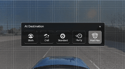 其他车的智驾一般最多是3种超车策略可选,而FSD V14多到有5种,从最慢的Sloth,图标是这个树懒,到最激进的Mad