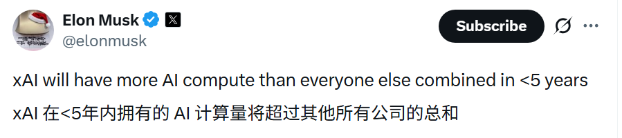马斯克“放话”:5年内,xAI的AI算力将超过其他公司总和