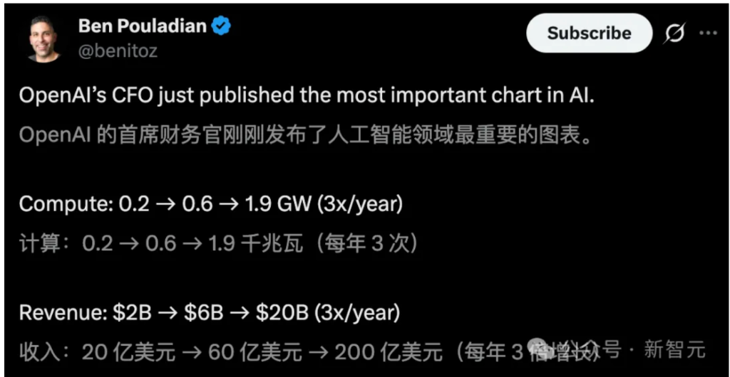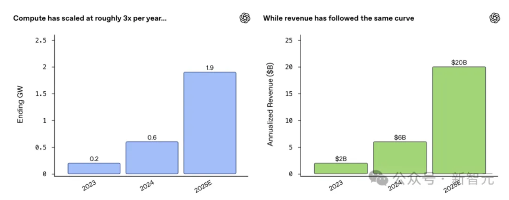 如此一来,OpenAI得以实现三年内算力9.5倍增长、收入10倍增长并冲破200亿美金的壮举。