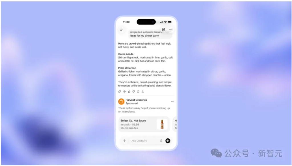 他们目前已确认的广告产品:当有基于你当前对话的相关赞助产品或服务时,广告会出现在答案底部。