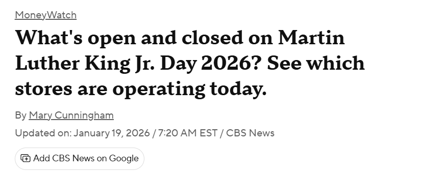 MLK Day:哪些商家开门/关店?