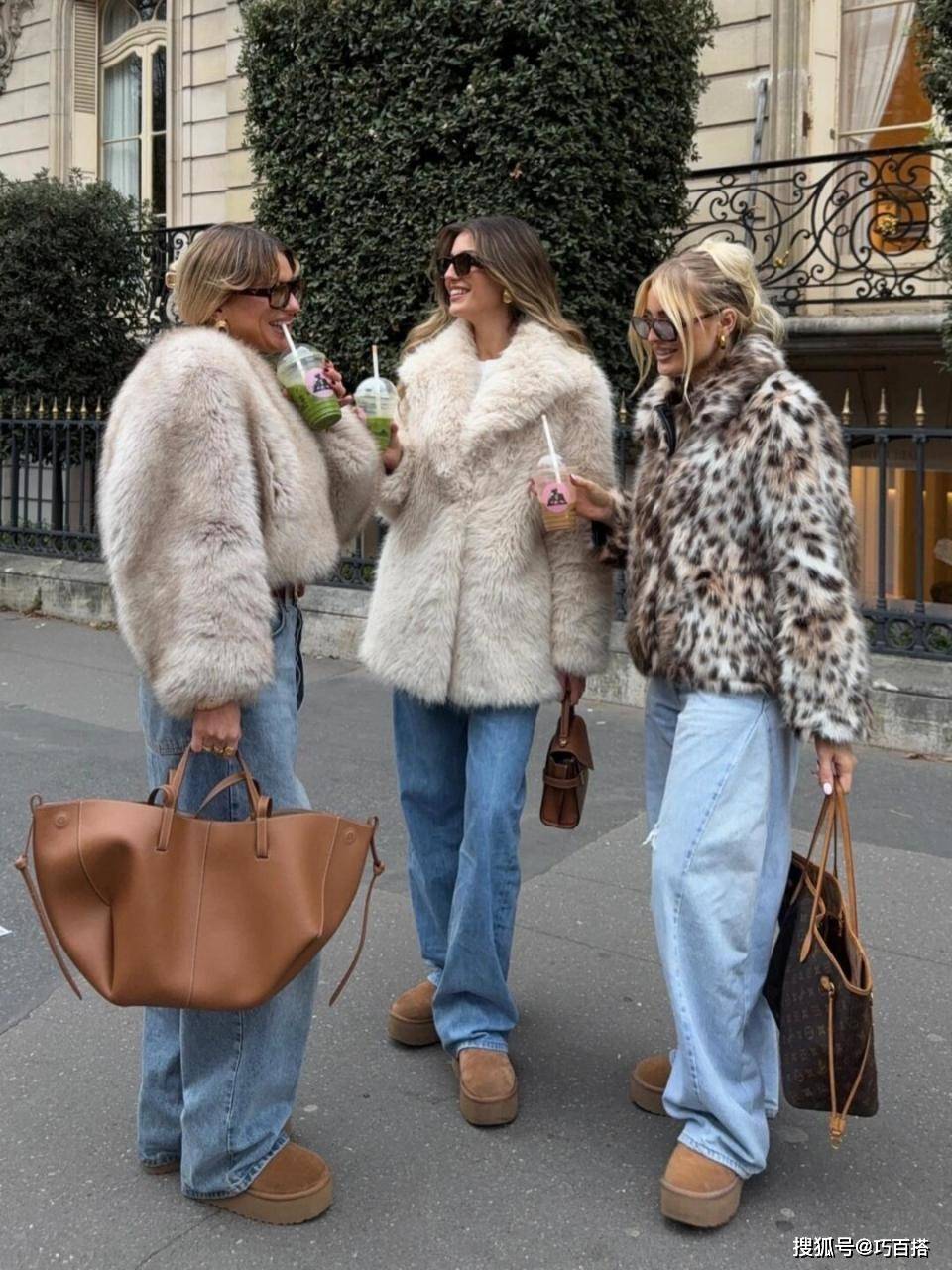 从博主们上身效果来看,皮草+水洗蓝牛仔裤的组合可以搭配任意鞋子,可以选择和皮草精致风格一致的皮鞋,尖头鞋、及踝靴是最佳选择。