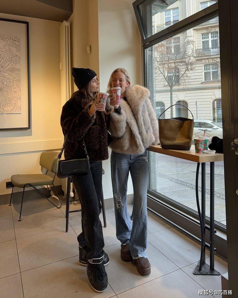 三,水洗蓝牛仔裤包容多种色系皮草,像博主一样选择深色系皮草可以搭配水洗蓝牛仔裤,选择浅色皮草与之搭配效果也不赖。