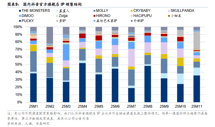 在国内抖音官方旗舰店,Labubu的销售占比在第四季度已降至30%左右,而星星人、Crybaby等新IP的份额正快速上升。
